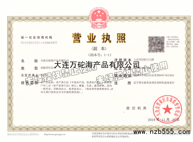 | 發(fā)證機(jī)構(gòu): | 大連金普新區(qū)市場監(jiān)督管理局 | 發(fā)證時間 : | 2019-11-23 |