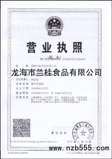 | 發(fā)證機(jī)構(gòu): | 福建省南靖縣工商行政管理局* | 發(fā)證時(shí)間 : | 2008-04-26 |