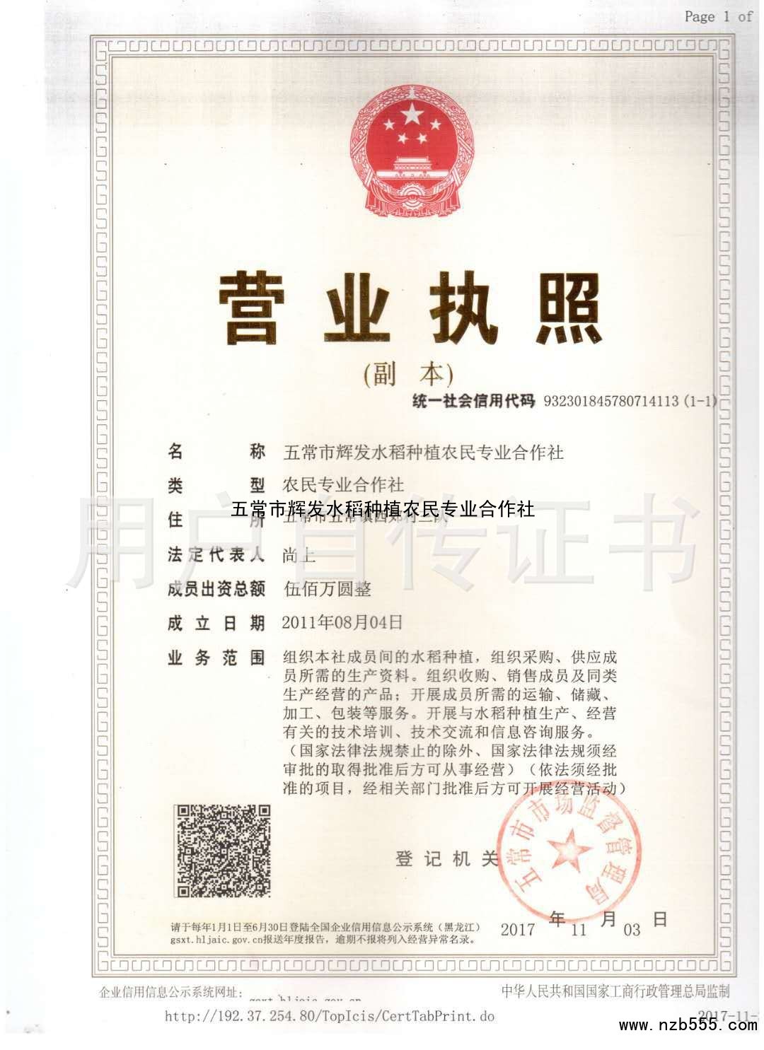 五常市輝發(fā)水稻種植農(nóng)民專業(yè)合作社