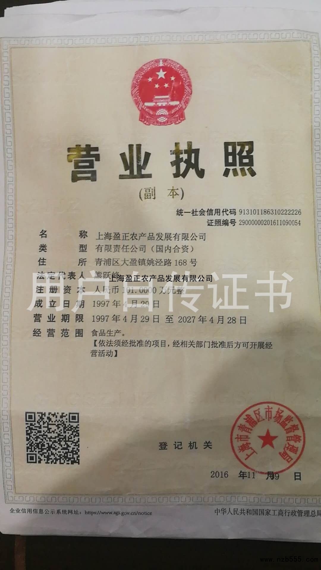 上海盈正農產品發展有限公司