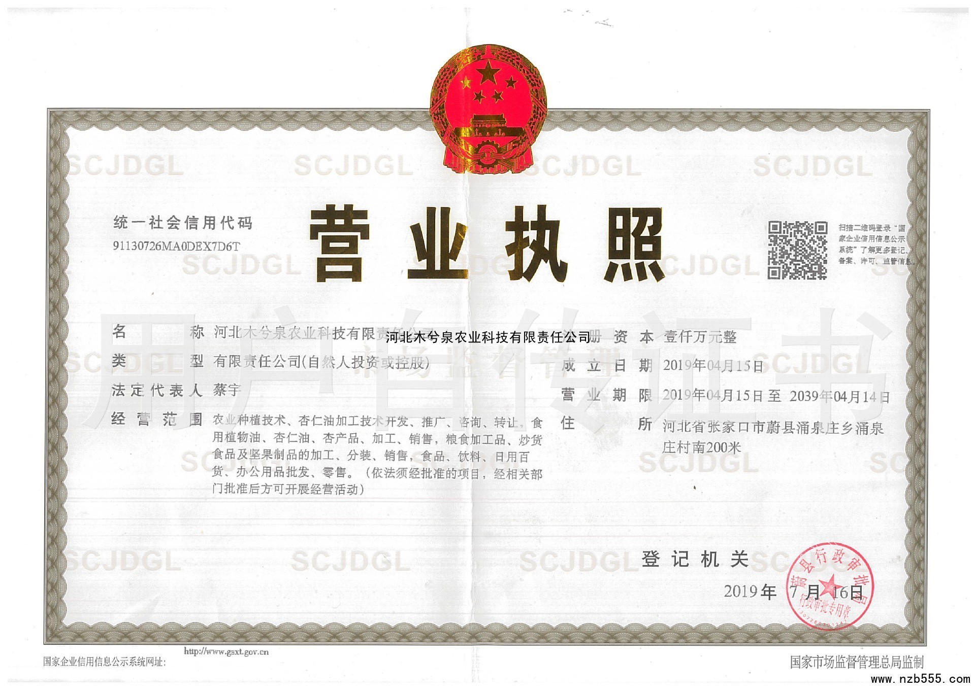 首頁 > 榮譽(yù)資質(zhì) > 河北木兮泉農(nóng)業(yè)科技有限責(zé)任公司