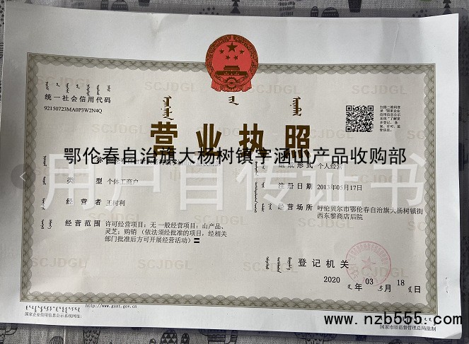 鄂倫春自治旗大楊樹鎮宇涵山產品收購部