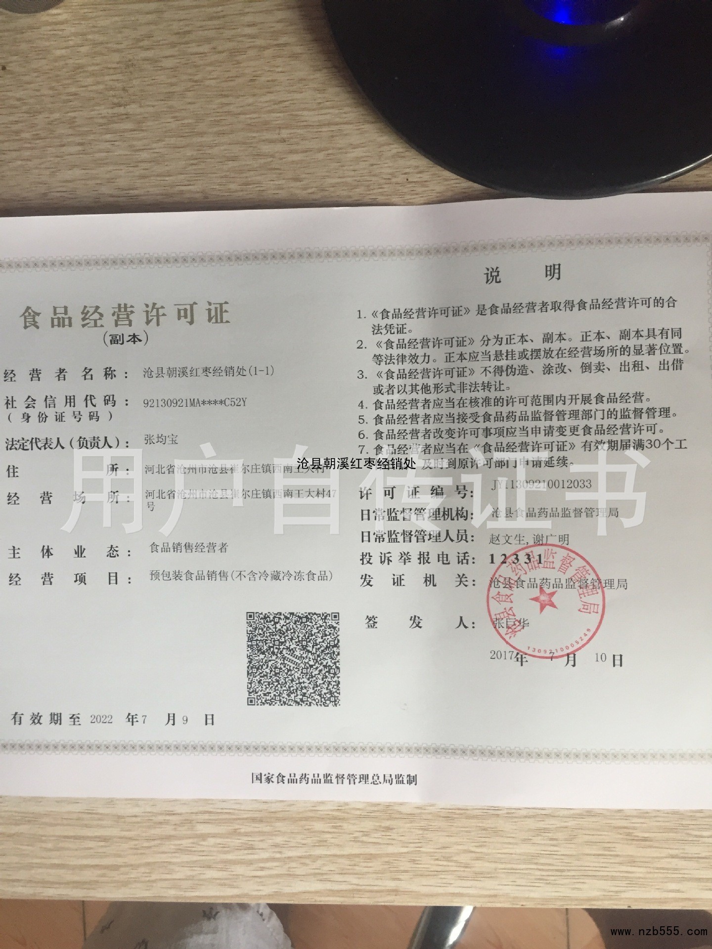 榮譽(yù)資質(zhì) 滄縣朝溪紅棗經(jīng)銷(xiāo)處