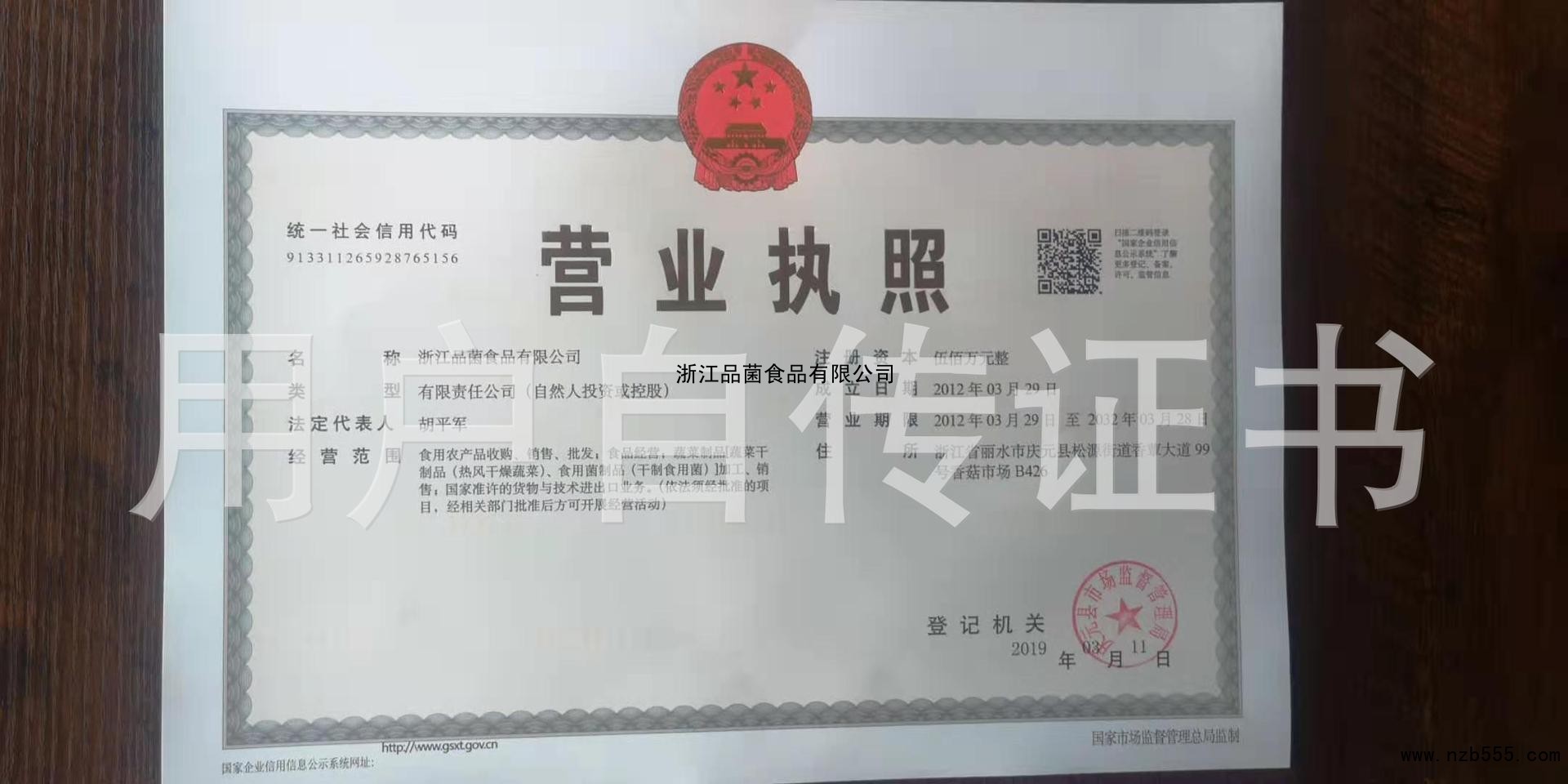 | 發(fā)證機(jī)構(gòu): | 慶元縣市場監(jiān)督管理局 | 發(fā)證時(shí)間 : | 2019-03-11 |