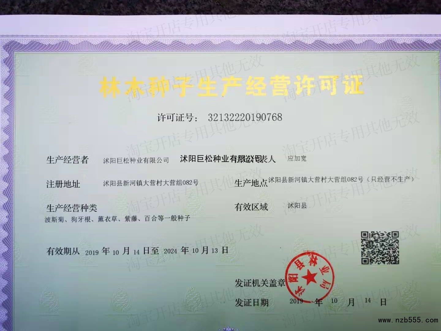 | 發(fā)證機(jī)構(gòu): | 沭陽(yáng)縣林業(yè)局 | 發(fā)證時(shí)間 : | 2019-10-14 |