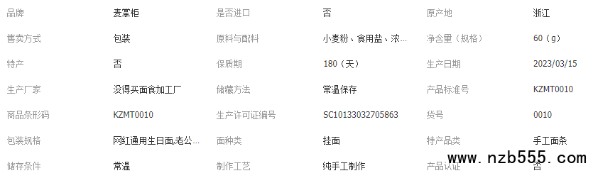 主營: 待煮面條