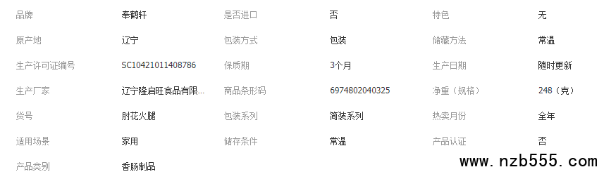 奉鶴軒肘花火腿248g即食豬肉火腿熟食下酒菜旅游餐飲拼盤純肉香腸